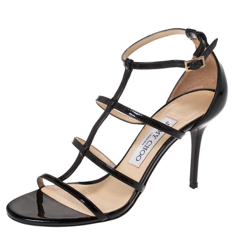 Pre Owned Jimmy Choo Black Patent Leather Dory Caged Sandals Size 36