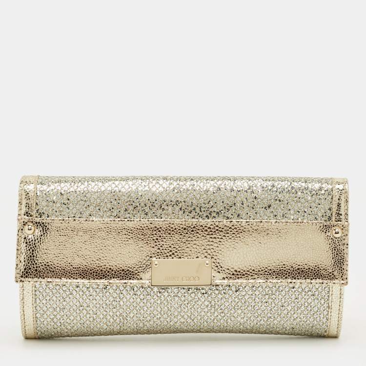 Jimmy Choo Silver/Gold Glitter and Leather Reese Flap Clutch
