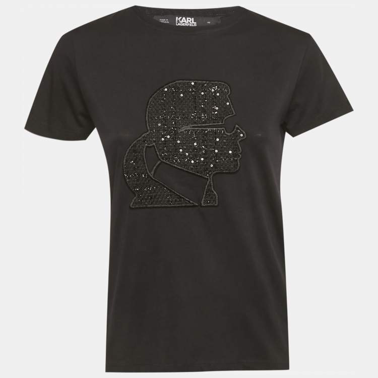 Pre Owned Karl Lagerfeld Black Bouclé Karl Profile Cotton T-Shirt XS