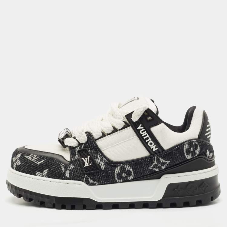Louis Vuitton Black/White Monogram Denim and Leather LV Trainer Maxi Sneakers Size 39