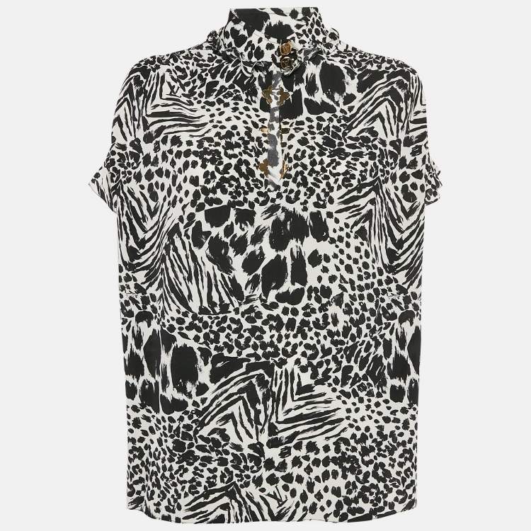 Louis Vuitton Black/White Printed Silk Metal Neck Detail Top M