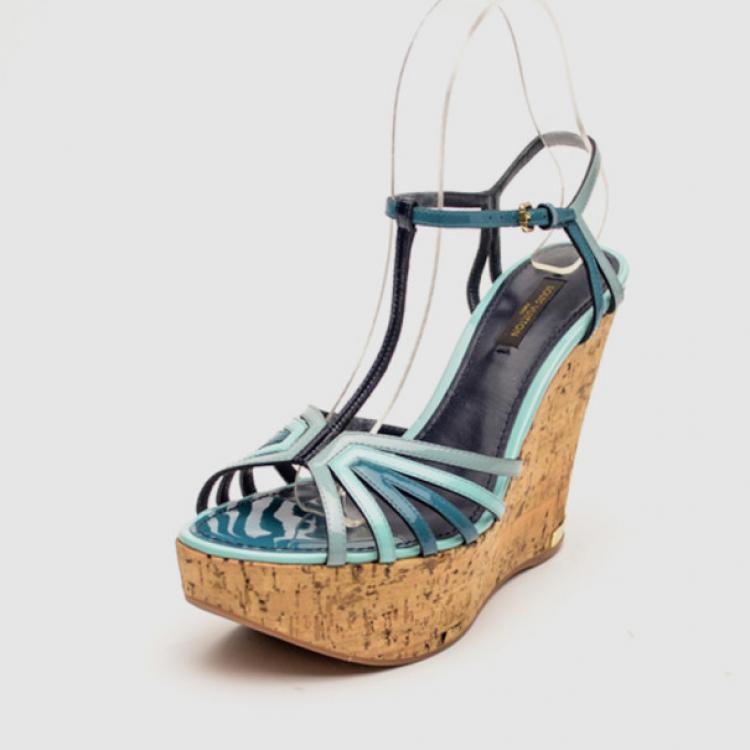 Louis Vuitton Blue Patent Leather Summertime Cork Wedges Size 38