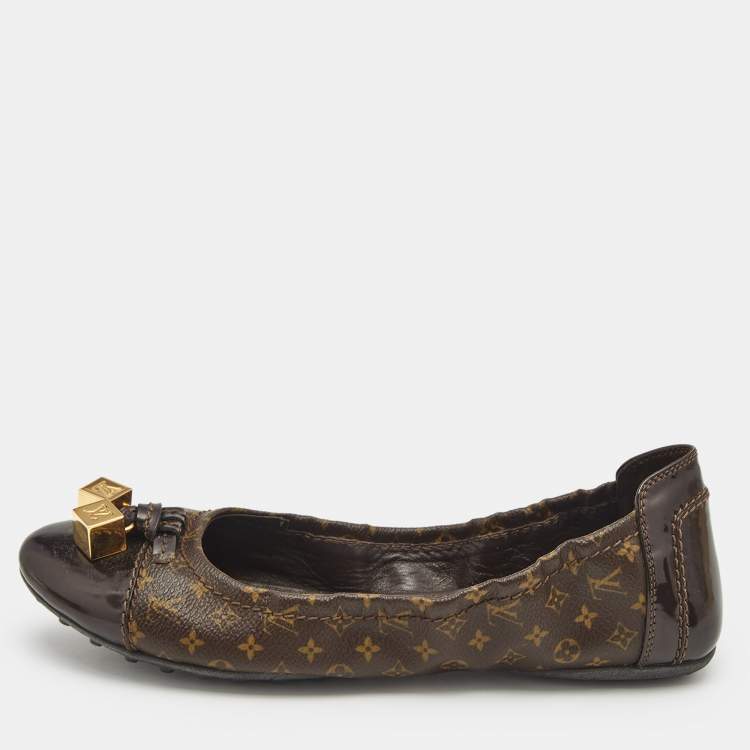 Pre Owned Louis Vuitton Brown Coated Canvas and Patent Leather Lovely Ballet Flats Size 38