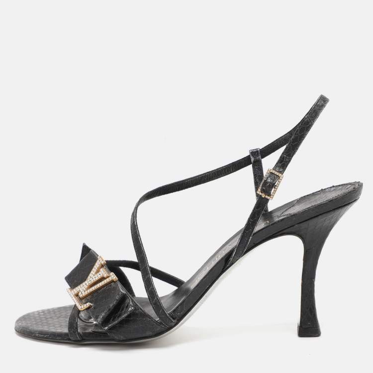 Pre Owned Louis Vuitton Navy Blue Python Leather Slingback Sandals Size 38