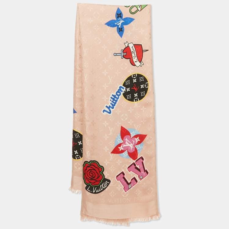 Louis Vuitton Pink Printed Wool Blend Monogram Scarf