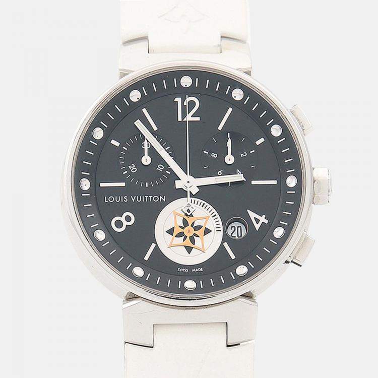 Pre Owned Louis Vuitton Tambour Moonstar Q8G01 Automatic Black Stainless Steel Women's Wristwatch 35mm