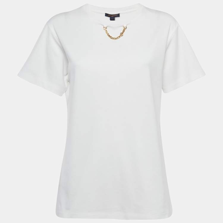 Pre Owned Louis Vuitton White Cotton Chain Detail Crew Neck T-Shirt L