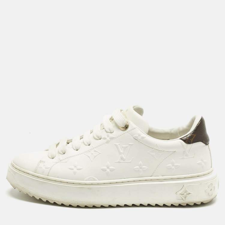 Louis Vuitton White Embossed Monogram Leather Time Out Low Top Sneakers Size 37.5
