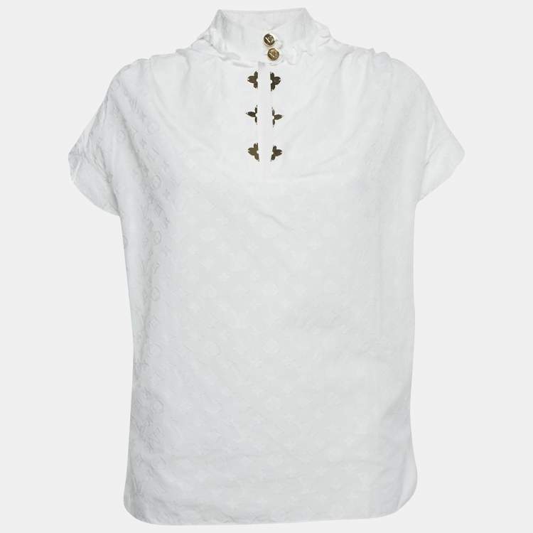 Pre Owned Louis Vuitton white Monogram Fil Coupe Cotton Frill Blouse S