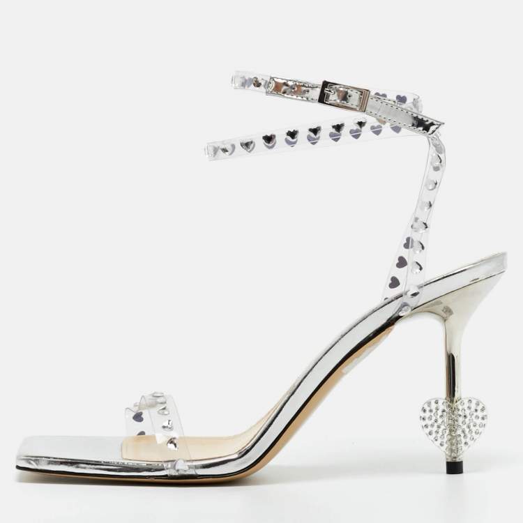 Mach & Mach Transparent PVC Heart Crystal Slingback Sandals Size 38.5