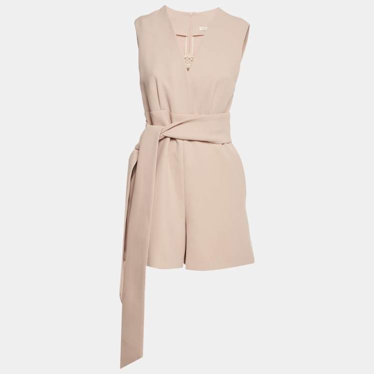 Maje Beige Lace Trim Crepe Belted Playsuit M