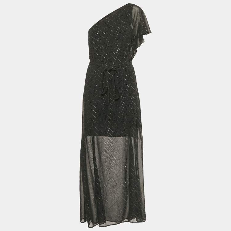 Maje Black Embellished One Shoulder Crepe Maxi Dress L