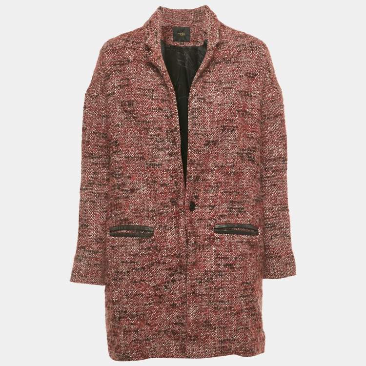Pre Owned Maje Red Tweed Mid-Length Gordan Coat S