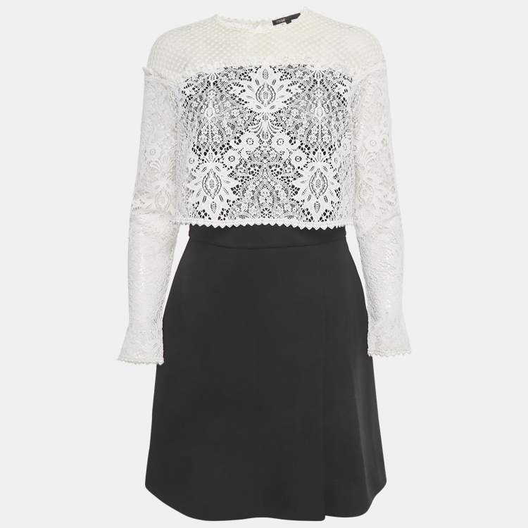 Pre Owned Maje White / Back Lace Overlay Relim Mini Dress L