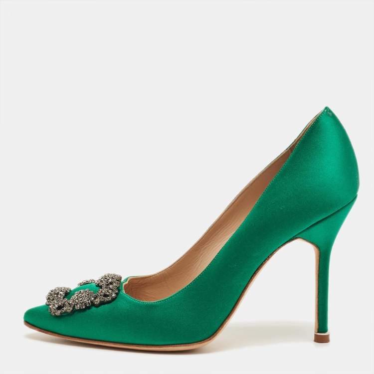 Manolo Blahnik Green Satin Hangisi Pumps Size 38.5