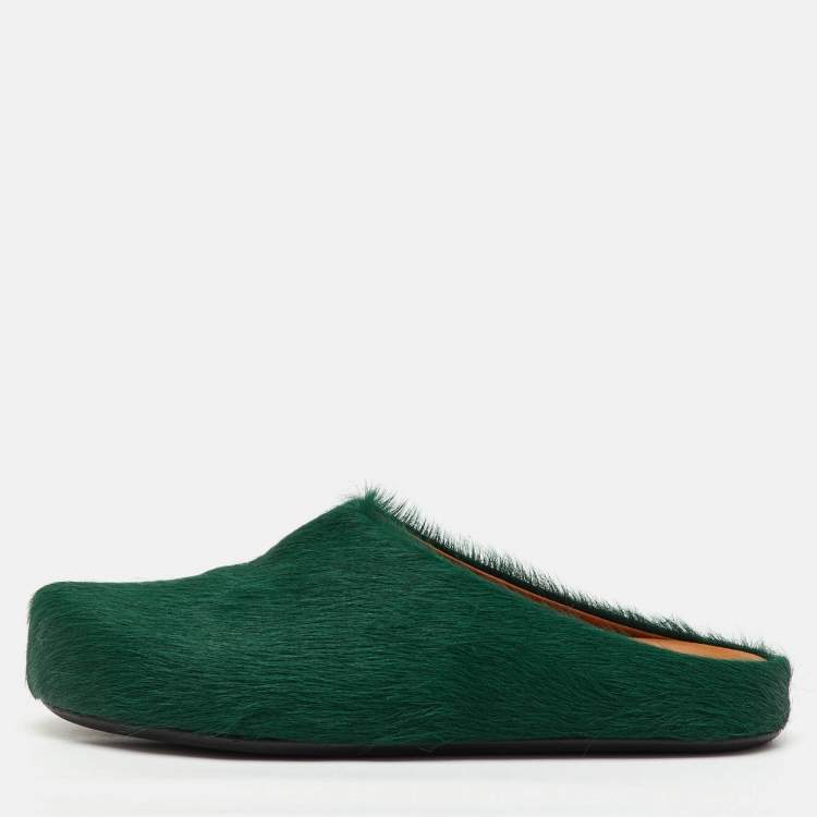 Marni Dark Green Calf Hair Fussbett Sabot Flat Mules Size 42