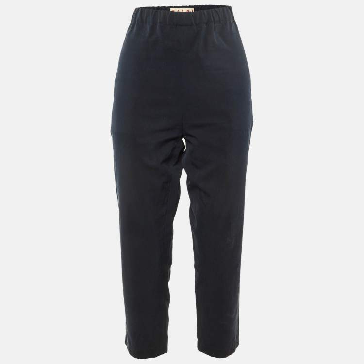 Pre Owned Marni Navy Blue Cotton Elastic Waist Pants M