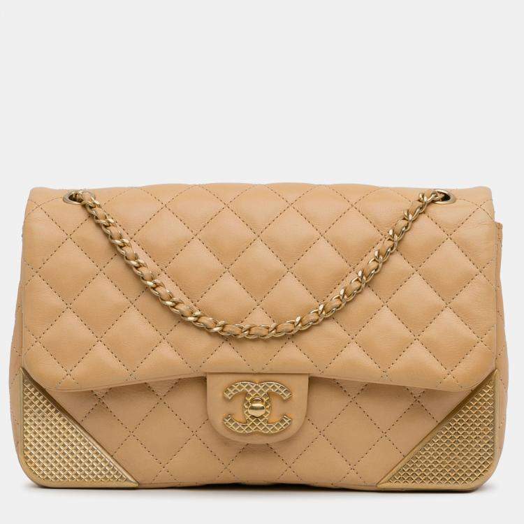 Chanel Yellow Medium Classic Lambskin Metal Edge Shoulder Bag
