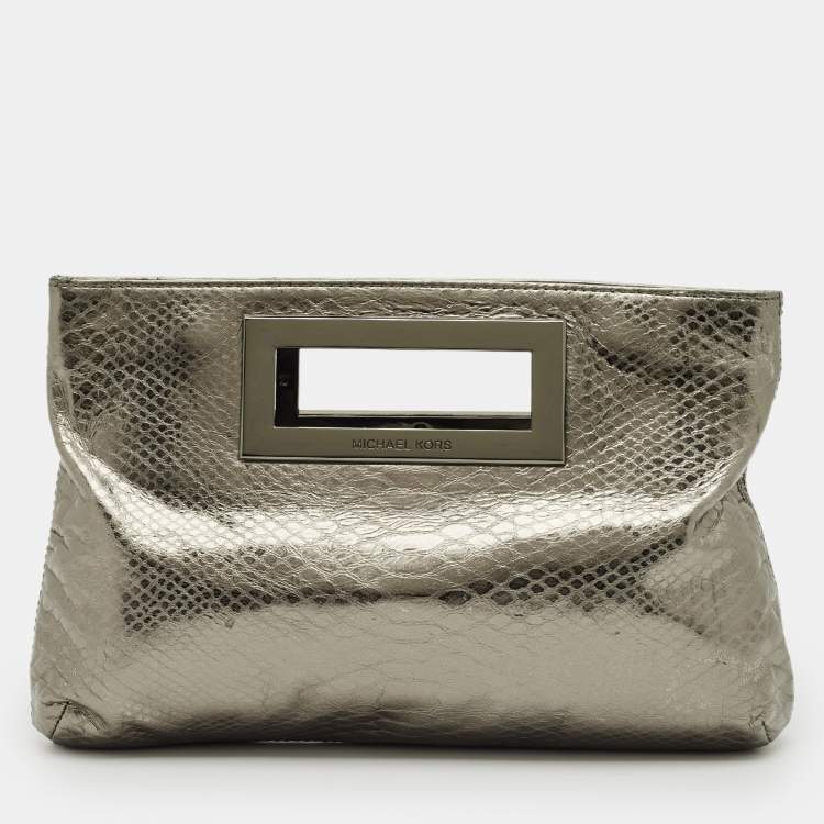 Pre Owned Michael Kors Metallic Python Embossed Leather Berkley Clutch