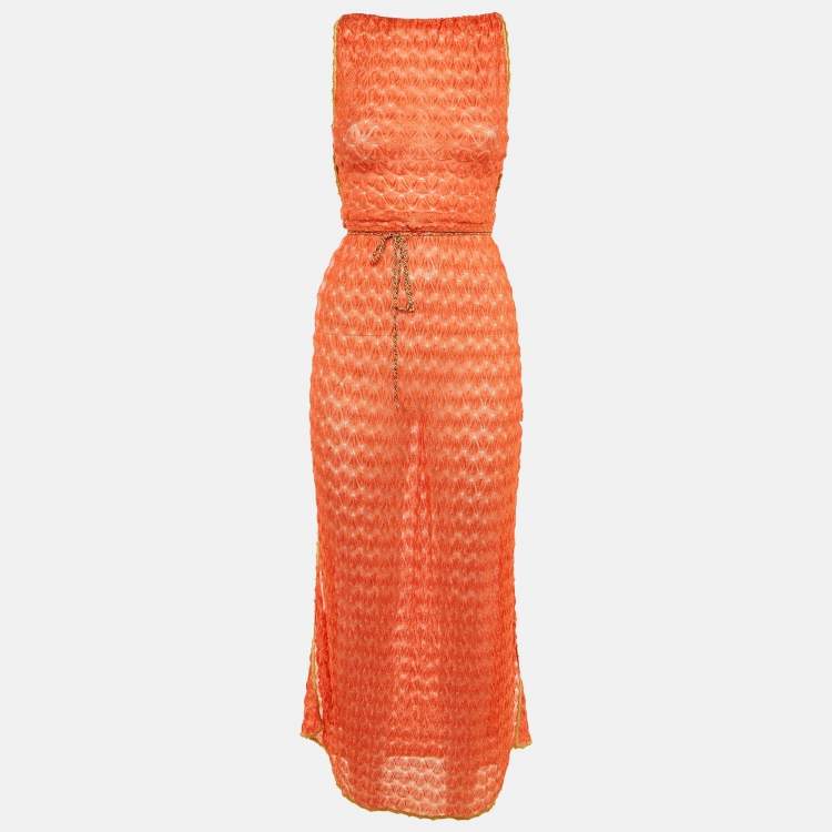 Pre Owned Missoni Mare Orange Knit Cover Up Maxi Dress S