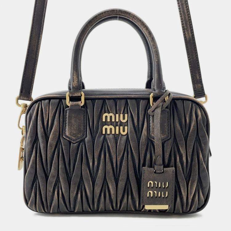 Pre Owned Miu Miu Miu Arcadi Matelasse Distressed Medium Leather Handbag