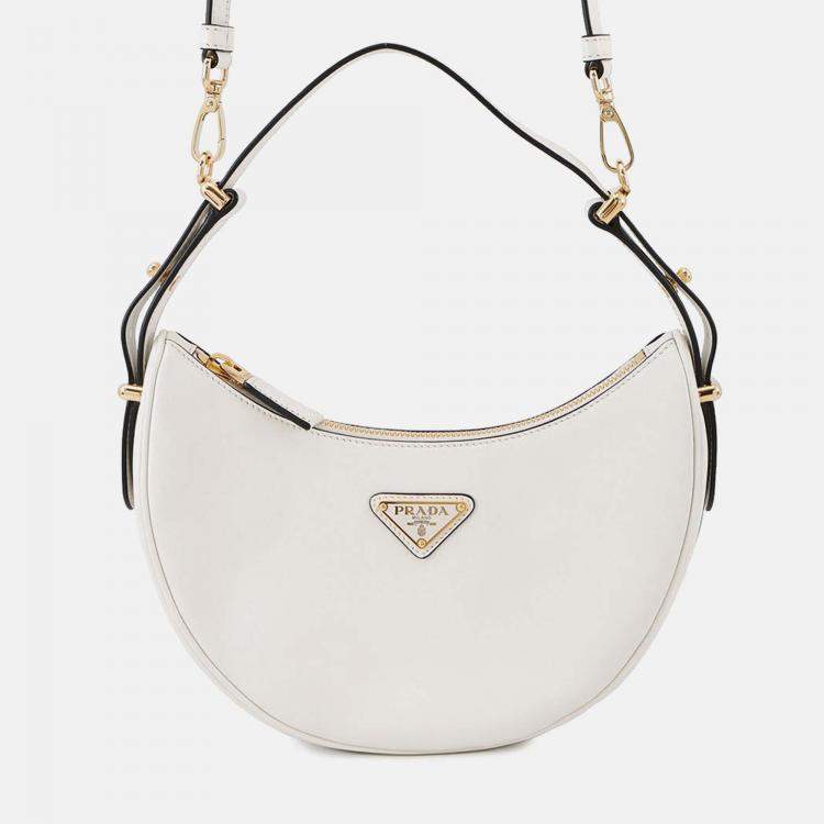 Pre Owned Prada Arke Shoulder Bag White Leather Size Small