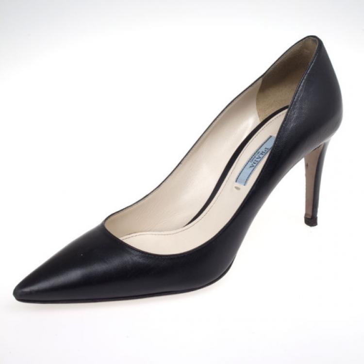 Pre Owned Prada Black Leather Basic Pointed Toe Pumps Size 39.5