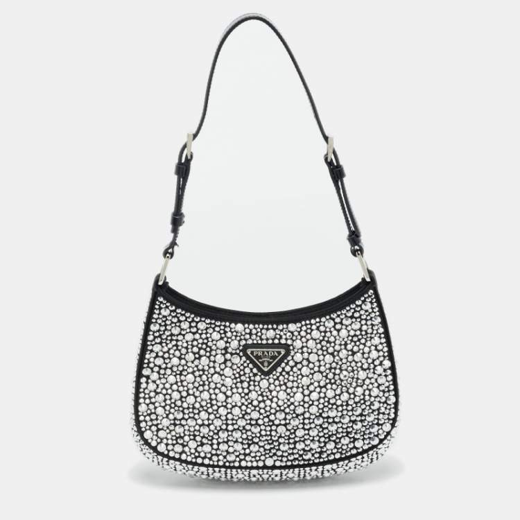 Pre Owned Prada Black Satin Cleo Crystals Hobo