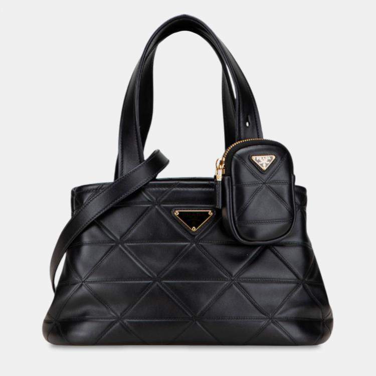 Pre Owned Prada Black Small Quilted Lambskin Satchel