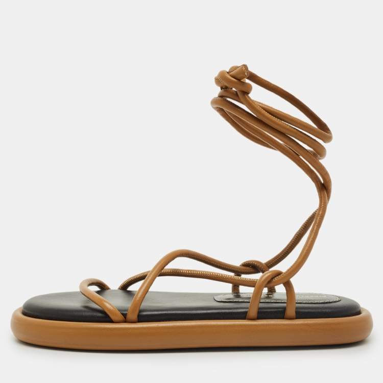 Pre Owned Proenza Schouler Brown Leather Pipe Flat Sandals Size 39