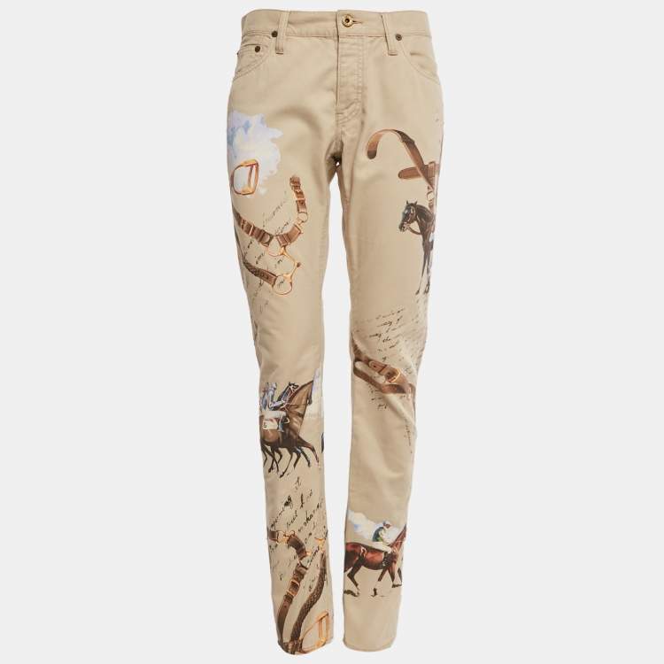 Pre Owned Ralph Lauren Beige Equestrian Print Cotton Thompson 650 Pants M
