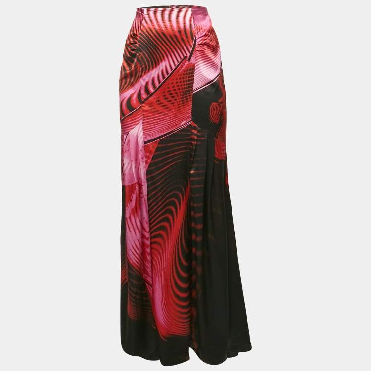 Roberto Cavalli Pink/Black Printed Silk Maxi Skirt M