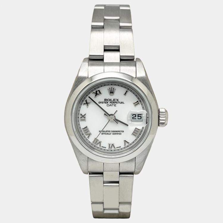 Pre Owned Rolex Date 79160 Automatic White Stainless Steel Women's Wristwatch 26 mm