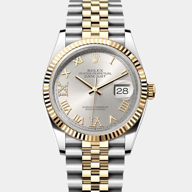 Pre Owned Rolex Datejust 126233-0031 Automatic Silver Diamond 18K Yellow Gold Stainless Steel Women’s Wristwatch 36 mm