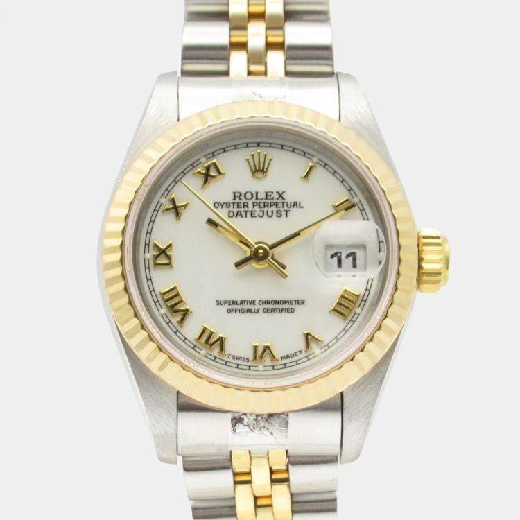 Pre Owned Rolex Datejust 69173 Automatic White 18k Yellow Gold Stainless Steel Women's Wristwatch 26 mm