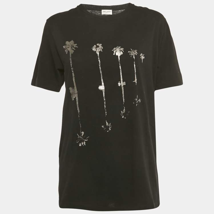 Pre Owned Saint Laurent Black Foil Print Jersey T-Shirt XS