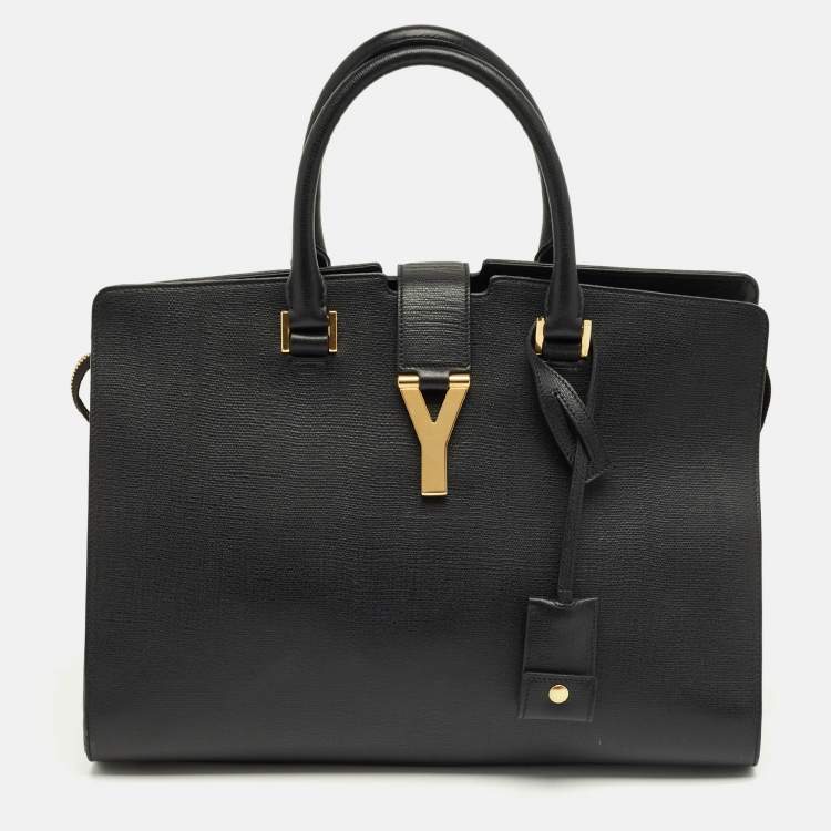 Saint Laurent Black Leather Medium Cabas Chyc Tote