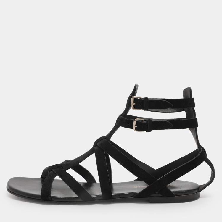 Saint Laurent Paris Black Suede Gladiator Sandals Size 38