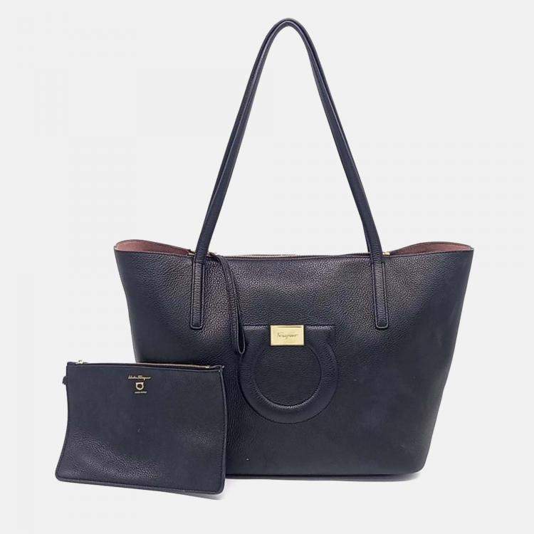 Salvatore Ferragamo Black Leather Gancini shopper bag