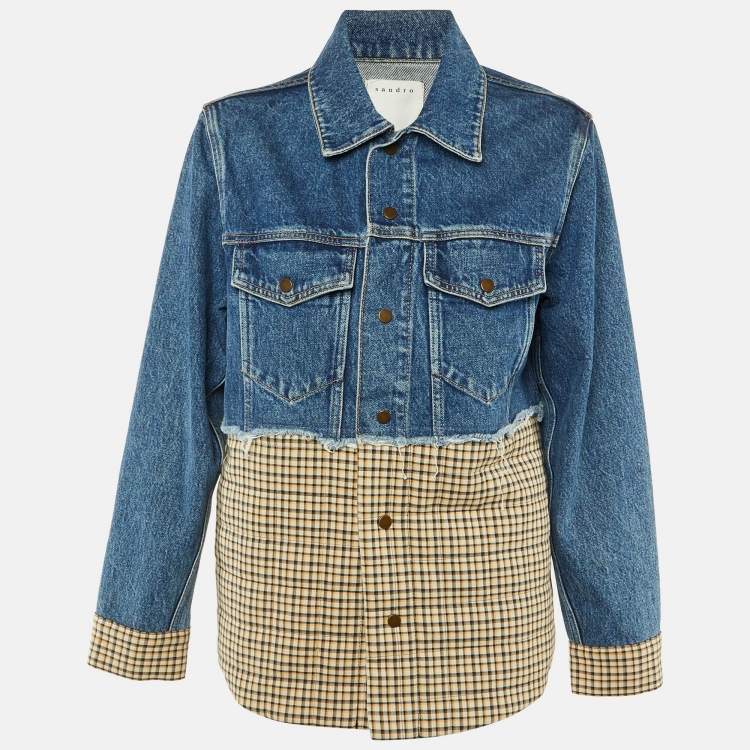 Pre Owned Sandro Blue Plaid Print Denim Jacket S