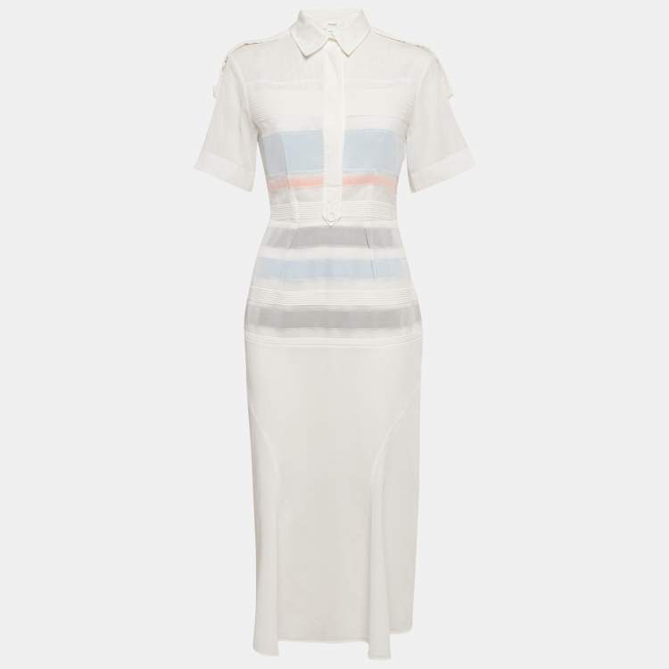 Sportmax White Cotton Pintuck Detail Dress Midi S
