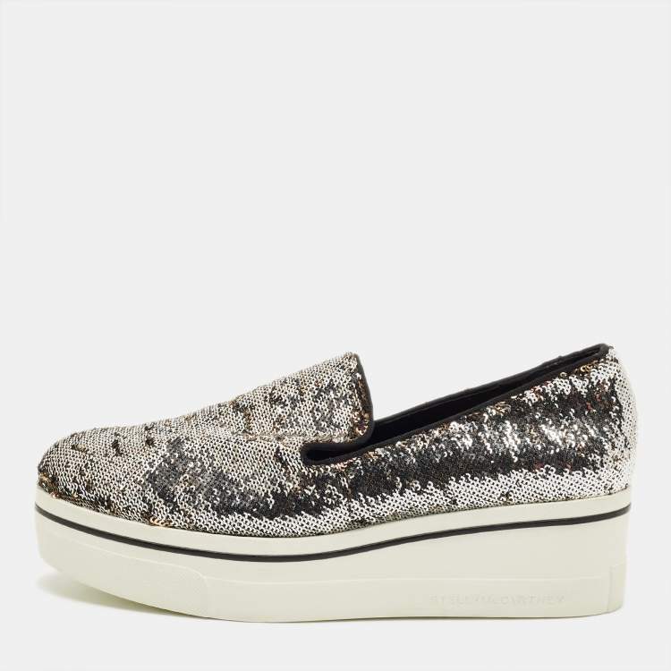 Pre Owned Stella McCartney Gold/Silver Sequin Binx Sneakers Size 40
