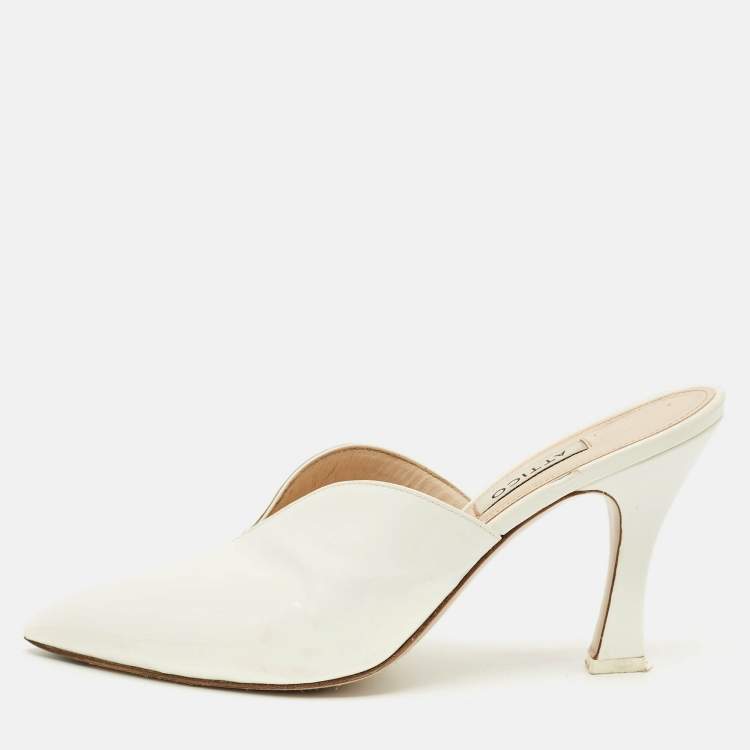 Pre Owned The Attico White Patent Leather Monica Mules Size 38