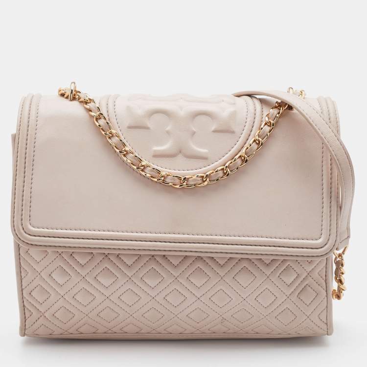 Tory Burch Beige Leather Large Fleming Shoulder Bag