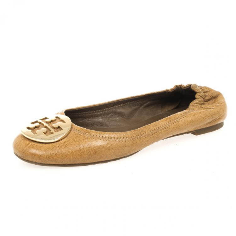 Tory Burch Beige Leather Reva Ballet Flats Size 40