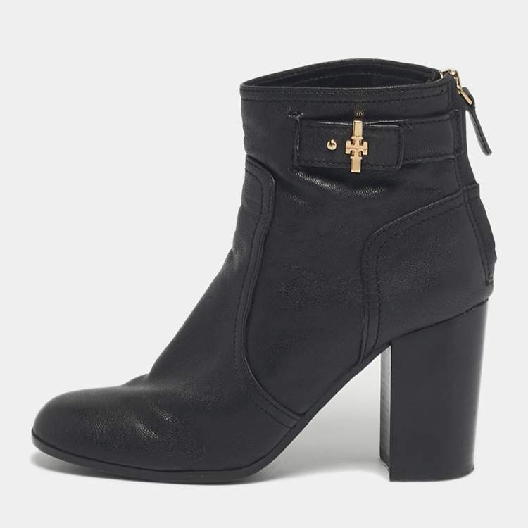 Pre Owned Tory Burch Black Leather Ankle Length Boots Size 37.5