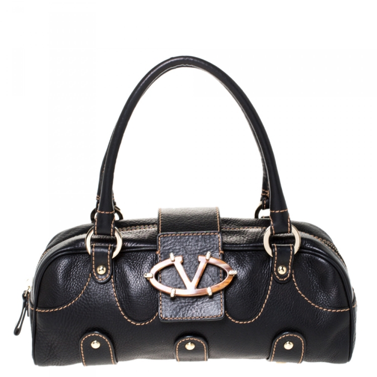 Pre Owned Valentino Black Leather Crystal Catch Satchel