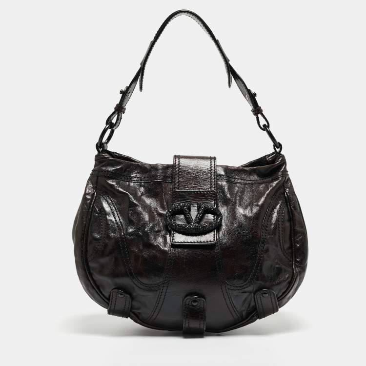 Pre Owned Valentino Black Leather Crystals Embellished Catch Hobo