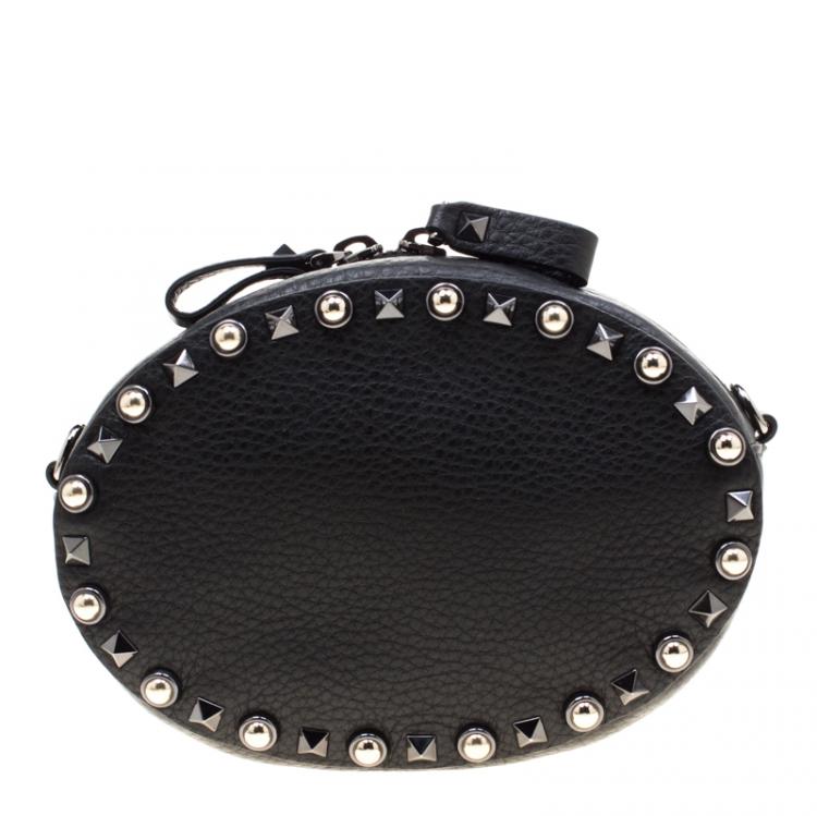 Valentino Black Leather Embroidered Guitar Rockstud Rolling Crossbody Bag