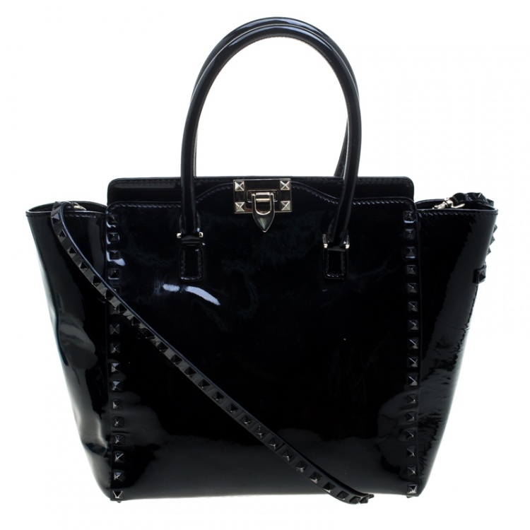 Pre Owned Valentino Black Leather Medium Rockstud Tote